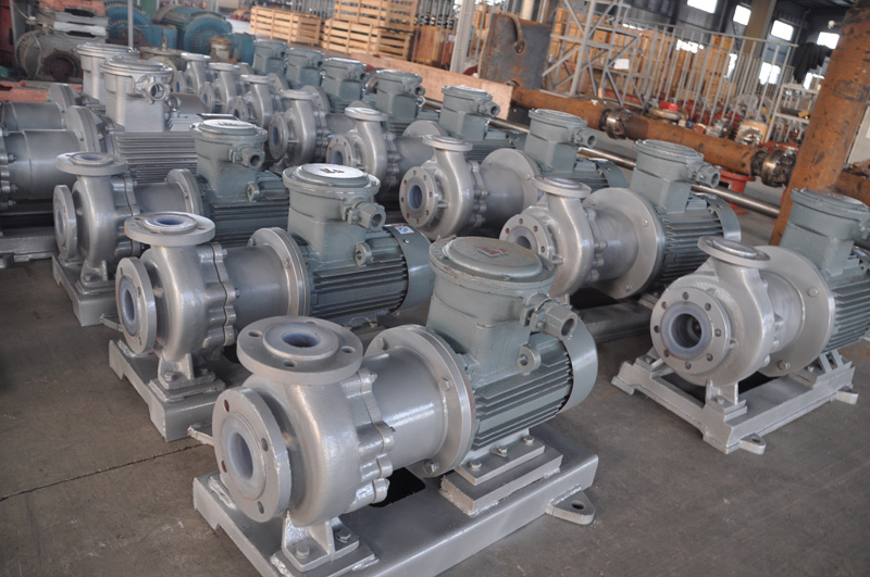 氟塑料磁力泵的設(shè)計不僅具有普通磁力泵的結(jié)構(gòu)緊湊,外型美觀,體積小,躁聲低,運(yùn)行可靠等優(yōu)點(diǎn),且其過流部件全部采用目前上耐腐蝕性能的“塑料王”(氟塑料)制造,隔離套采用材料制造,具有高強(qiáng)度的力學(xué)性能,消除了普通磁力泵存在的磁渦流現(xiàn)象。因此,氟塑料磁力泵可輸送任意濃(強(qiáng))度的酸、堿、氧化劑等腐蝕性介質(zhì)而毫不受損。